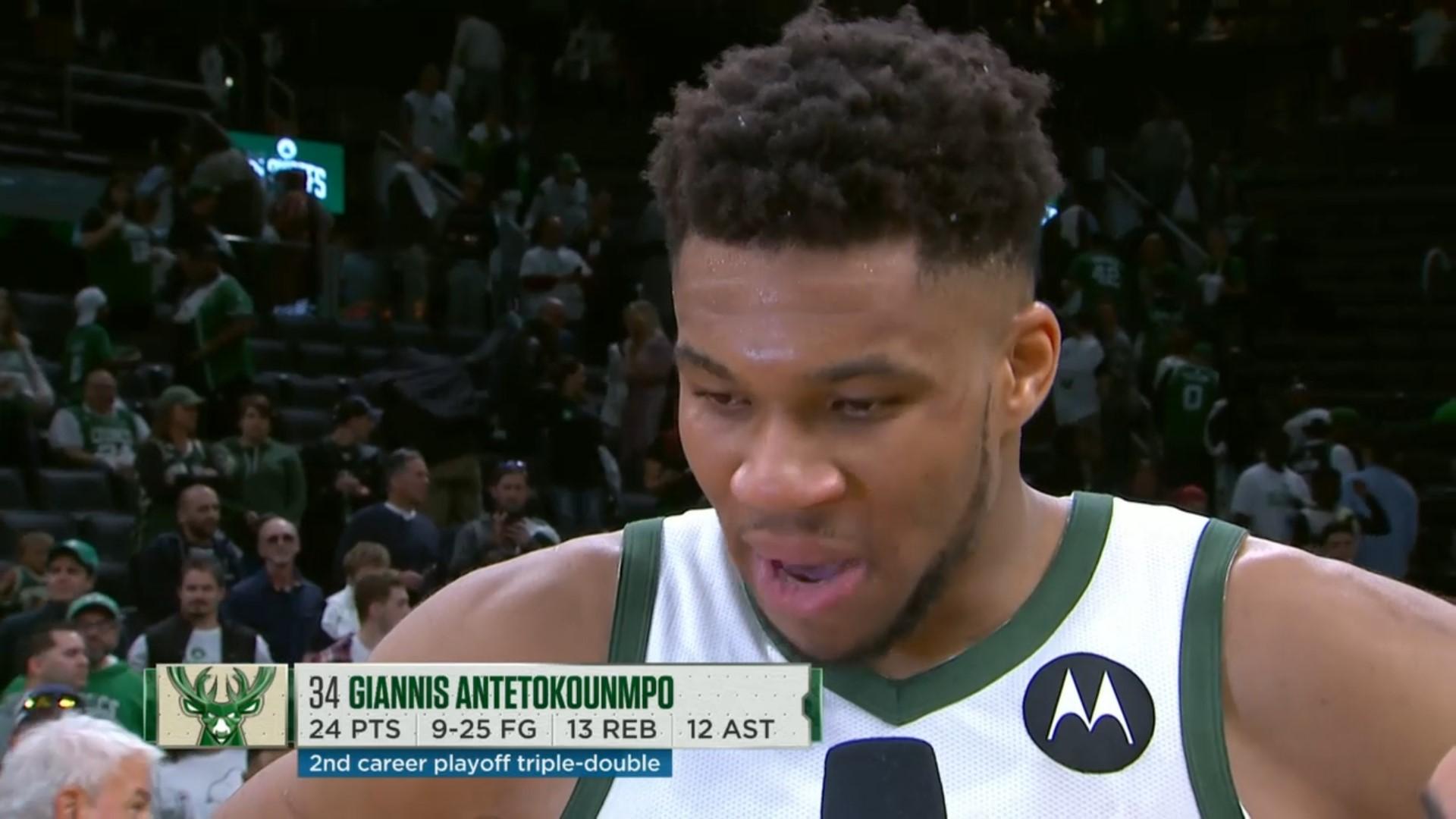 En balade face aux Bulls au premier tour des Playoffs, Giannis Antetokounmpo se retrouvait dimanche soir face à un tout autre challenge : la redoutable défense des Celtics. Résultat ? Il a dû batailler, mais il a surtout énormément pesé. Triple-double, showtime et victoire au bout, bref une autre journée au bureau pour le Greek Freak.