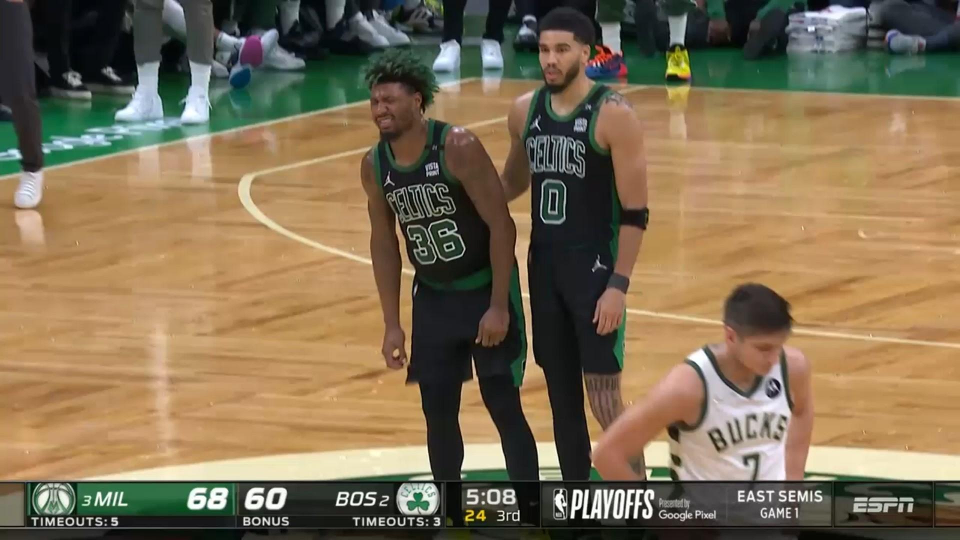 Marcus Smart cabossé de partout : d’abord touché à l’épaule et maintenant à la jambe, le DPOY pourra-t-il jouer le Game 2 ?