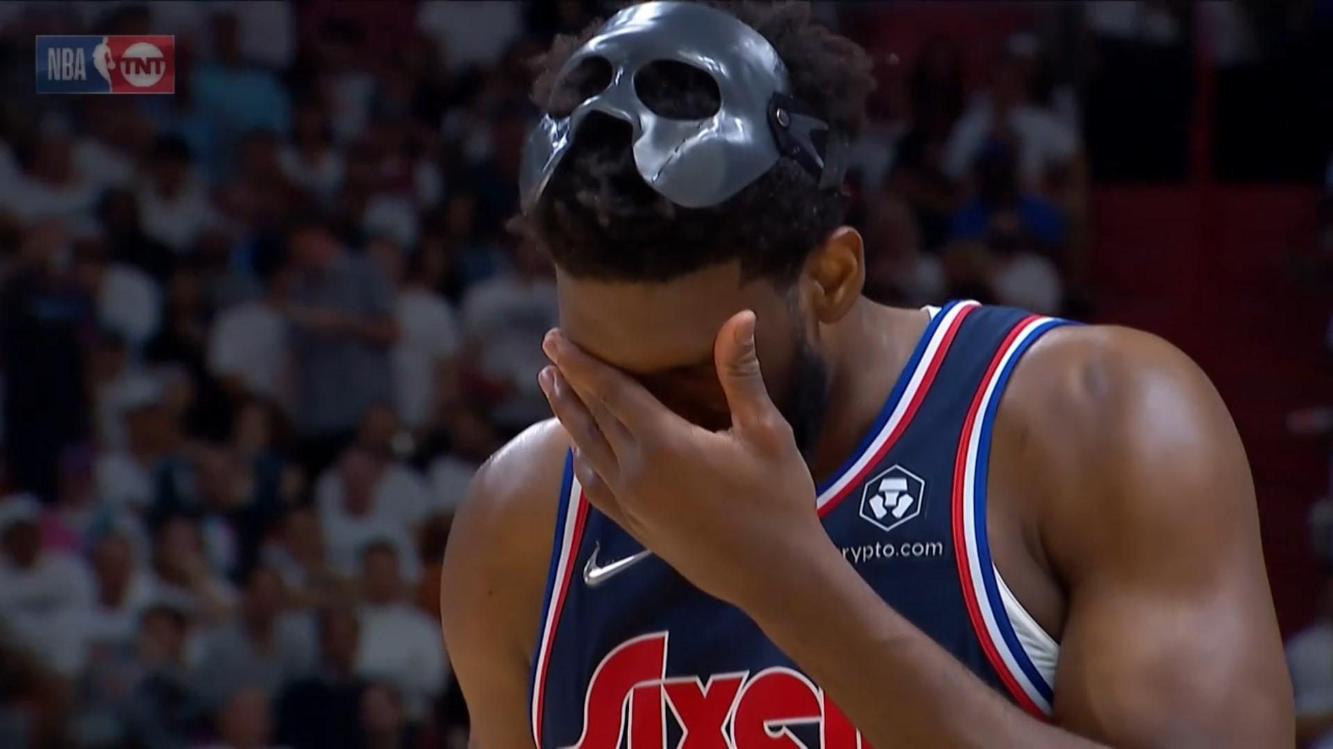 - Le pauvre Joel Embiid, déjà touché à l’orbite et au pouce, a pris un nouveau coup sur la truffe. Tout ça après avoir perdu la course au MVP. VDM