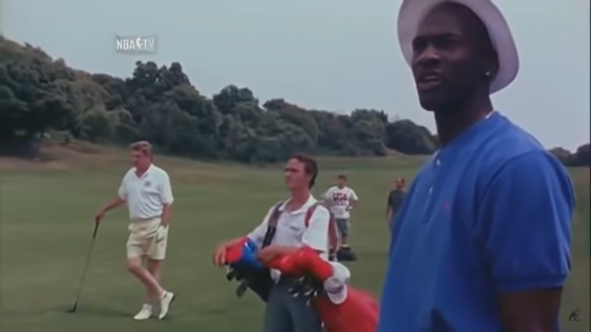 Pendant que certains de ses coéquipiers assistent à plusieurs compétitions olympiques pendant la quinzaine barcelonaise, Michael Jordan enchaîne lui les parties de golf. Durant toute sa carrière, la toute petite balle blanche accompagne MJ quand ce dernier a besoin de se libérer de la pression accompagnant la grosse balle orange. Et c’est particulièrement le cas durant ces JO 1992. Juste avant la demi-finale contre la Lituanie, Jojo se fait tranquillement 36 trous avant de rejoindre le bus de l’équipe à la dernière minute. Idem le jour de la grande finale contre la Croatie, où il se permet un 18 trous (raisonnable le MJ), tout ça après avoir passé la nuit à jouer aux cartes et la matinée à tourner une vidéo pour la NBA (pas tant que ça en fait). Peu importe ses obligations, peu importe les échéances, peu importe où il se trouve, Mike trouve toujours une place pour jouer au golf. Toujours. À ses côtés sur le green pendant l’expérience olympique ? Ahmad Rashad, journaliste sur NBC et grand pote de Jojo, l’ancien golfeur américain Payne Stewart (RIP), ou encore quelques membres de la Dream Team dont… le coach Chuck Daly à plusieurs reprises.