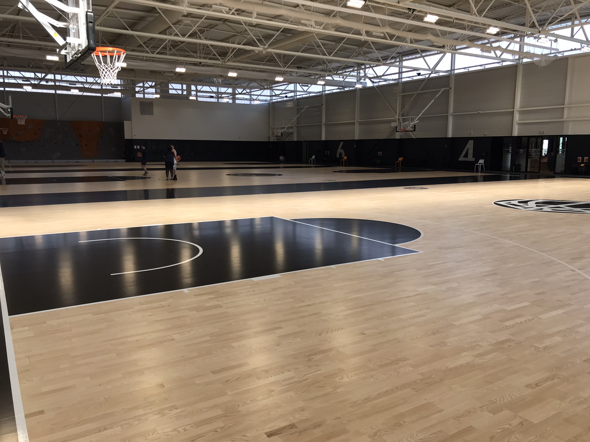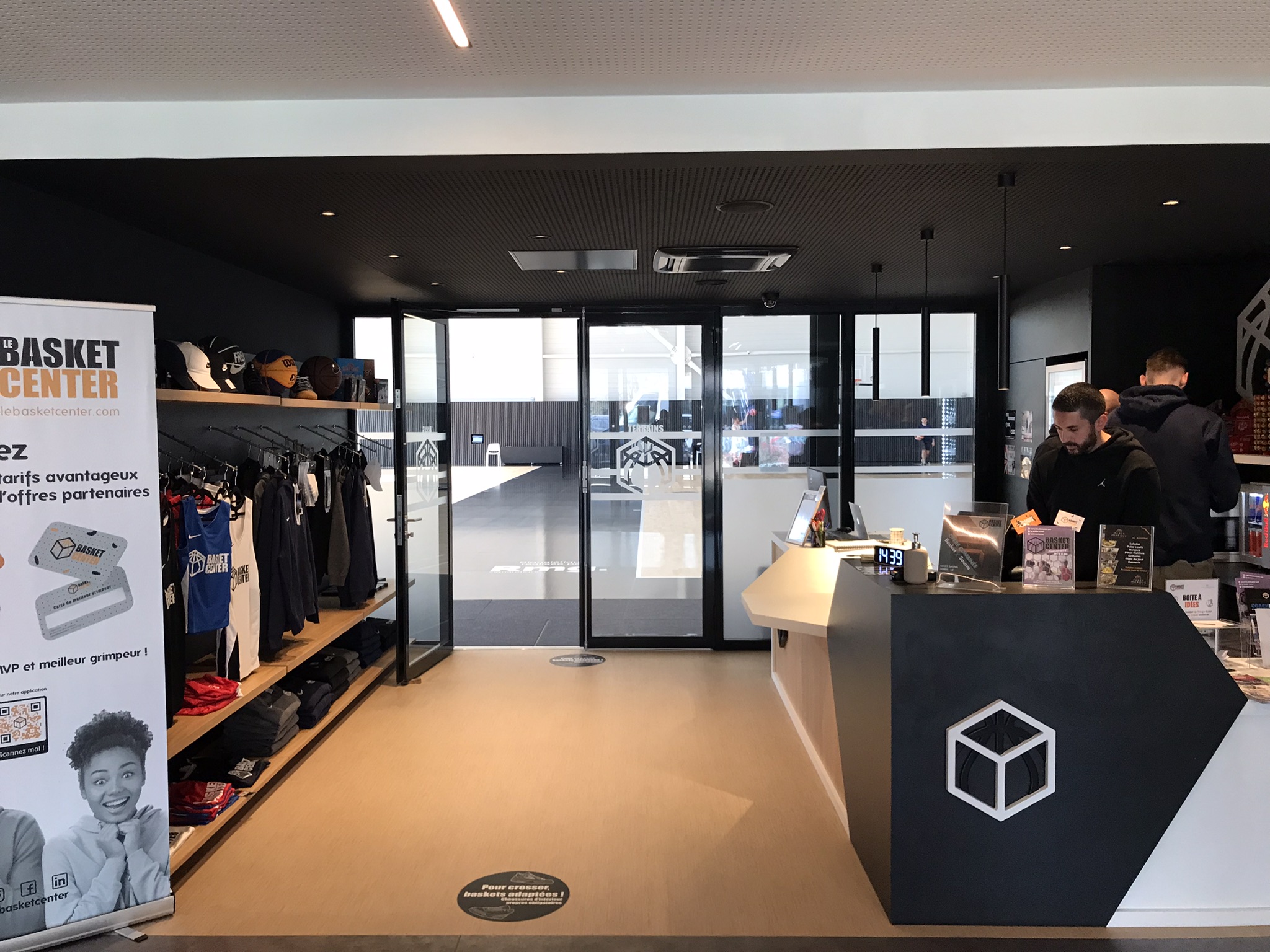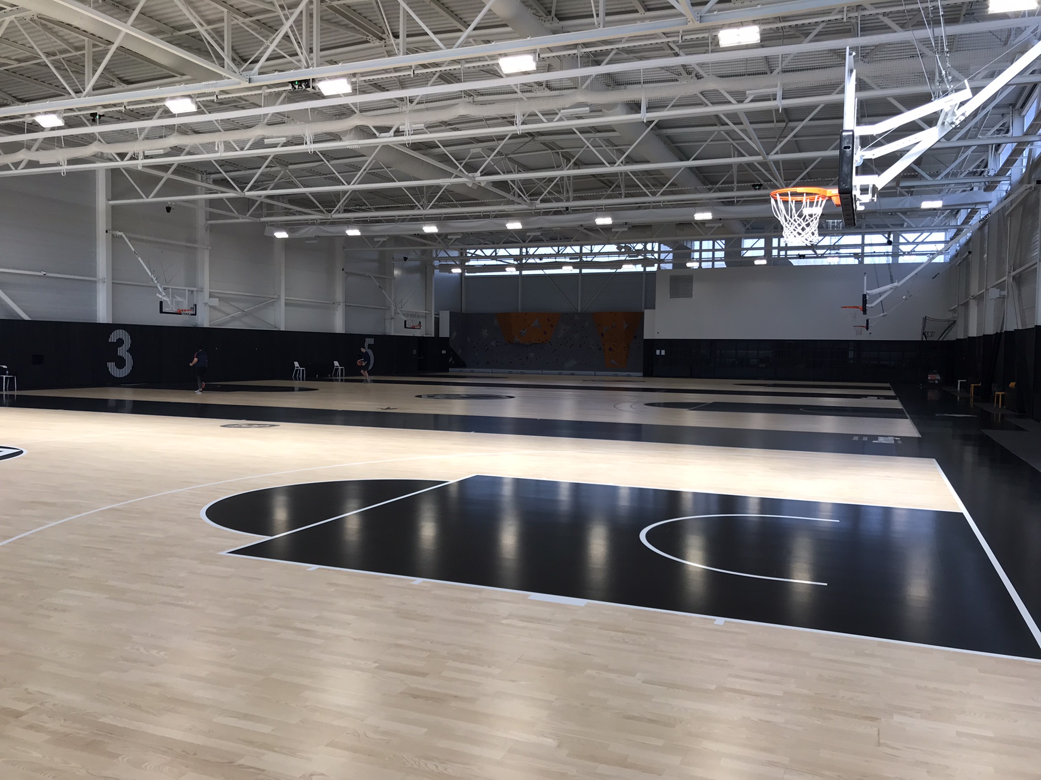 - 3 terrains de basket 5×5 homologués FIBA Monde, pouvant se transformer en six demi-terrains de 3×3, ouverts à la location (8h à 23h en semaine, 10h à 22h le week-end)