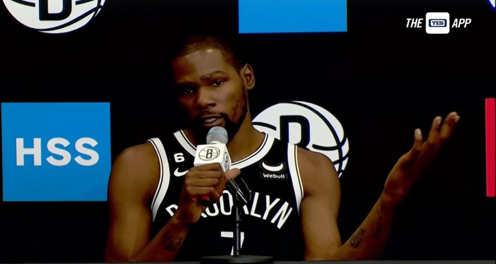 Il ne fallait pas être devin pour savoir que la majorité des questions des journalistes new-yorkais allaient être centrées sur la demande de trade signée KD à la fin de mois de juin dernier. Pourquoi ? Comment ? Quelles étaient les motivations exactes et comment voit-il son avenir à Brooklyn ? Autant d’interrogations qui méritaient des réponses claires de la part du principal intéressé. Alors pendant une bonne quinzaine de minutes ce lundi, Durant a pris une question après l’autre, micro dans la main et maillot noir des Nets sur les épaules.