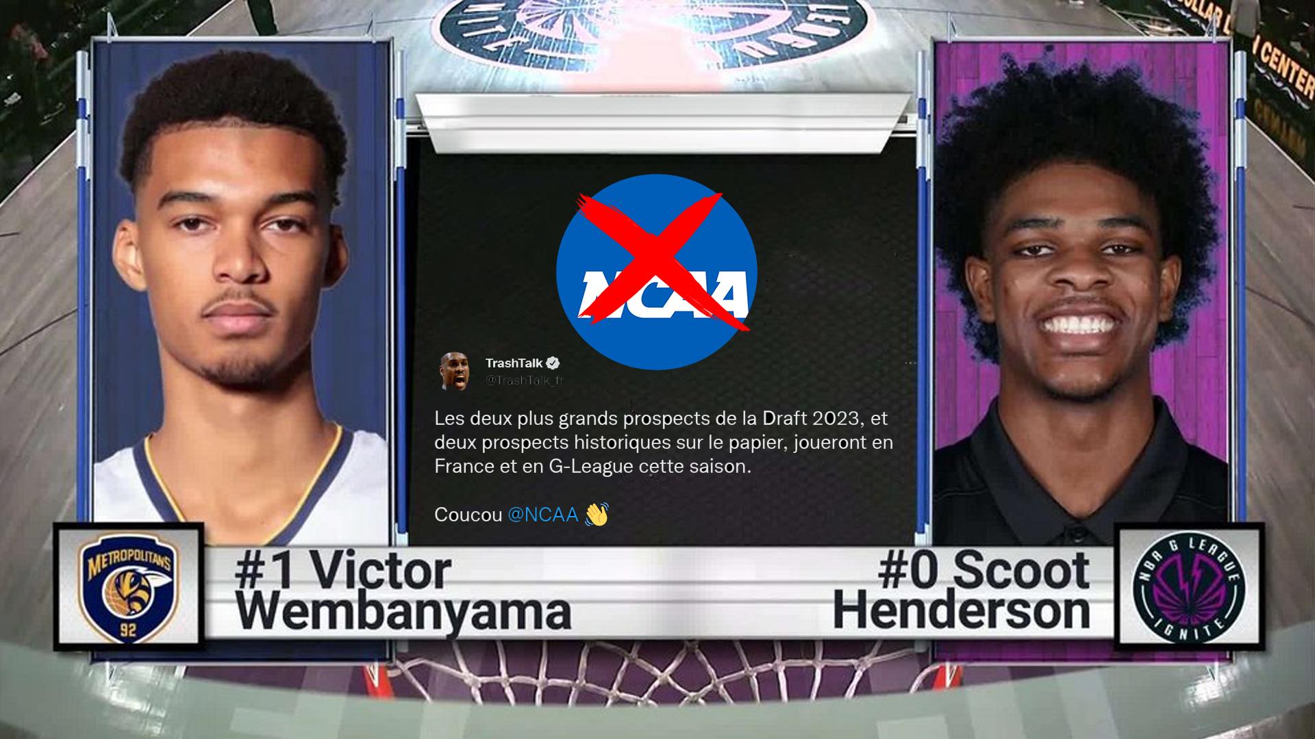 Favoris de la Draft NBA 2023 et réunis à Las Vegas début octobre pour nous offrir un gros showdown, Victor Wembanyama et Scoot Henderson seront les deux gros prospects à suivre tout au long de la saison à venir. Le premier parcourt l’Hexagone sous le maillot des Metropolitans 92, le second va continuer de fouler les parquets de G League avec l’Ignite. Et au milieu de tout ça, c’est la NCAA qui tire la tronche.