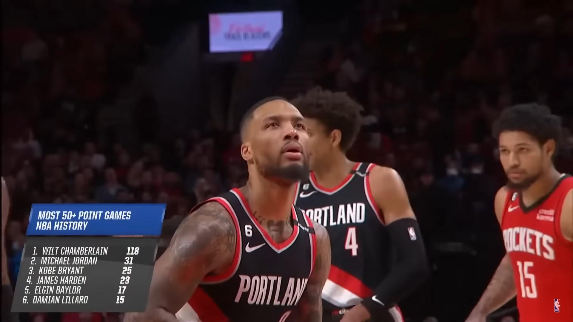 En même temps, on peut comprendre la NBA, Damian n’arrêtant pas de repousser ses propres limites après un début d’année 2023 déjà splendide. Sur les 23 matchs joués par Dame entre début janvier et le All-Star Break (où il a gagné le concours à 3-points), Lillard tournait à 35 points et 7 passes de moyenne, avec dans le lot six matchs à 40 points, un à 50 et un à 60. On peut donc ajouter désormais cette perf à 71 points, huitième meilleure prestation au scoring dans l’histoire de la NBA.