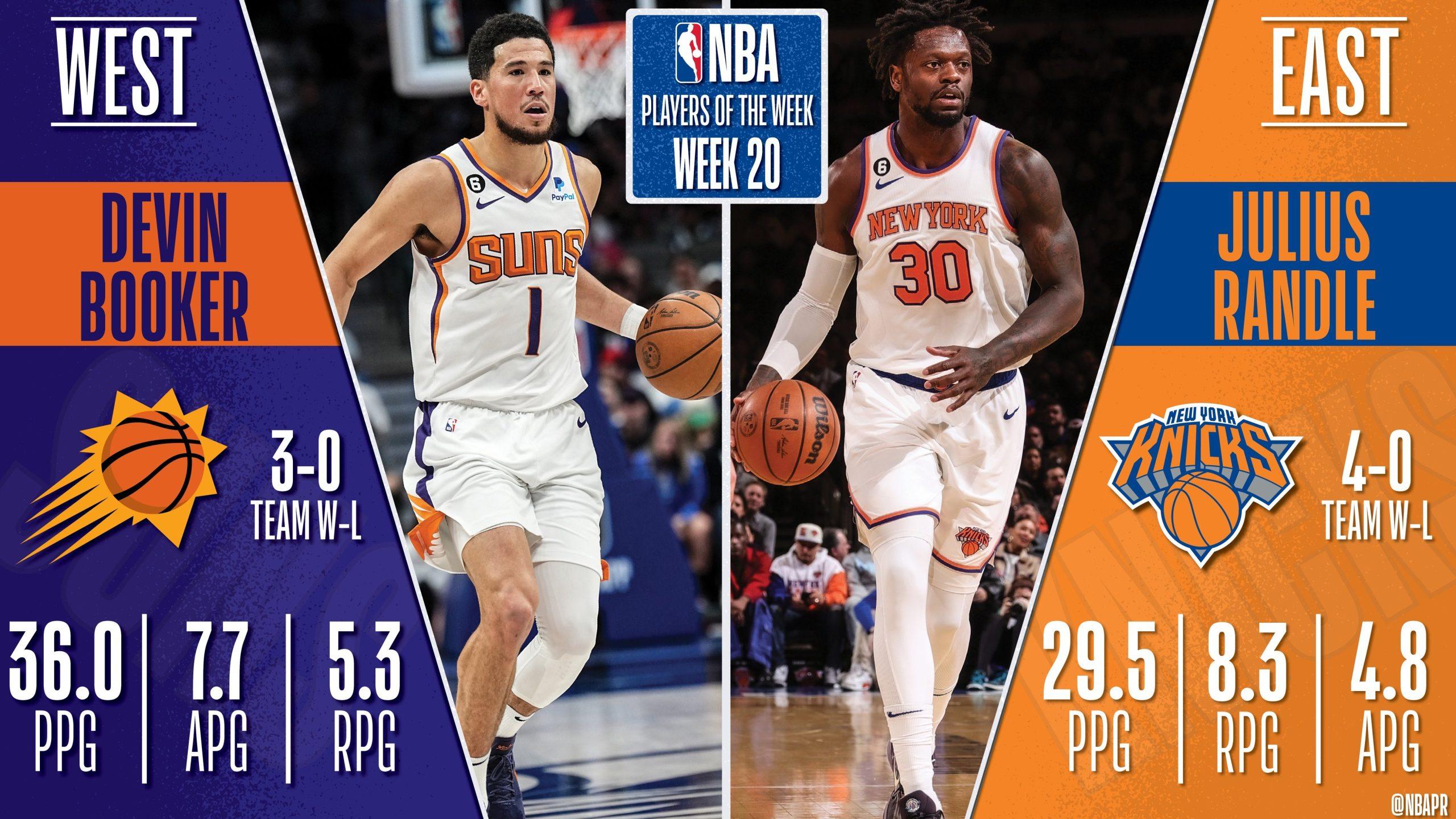 Devin Booker et Julius Randle élus joueurs de la semaine en NBA : gros cartons et zéro défaite, le mix parfait