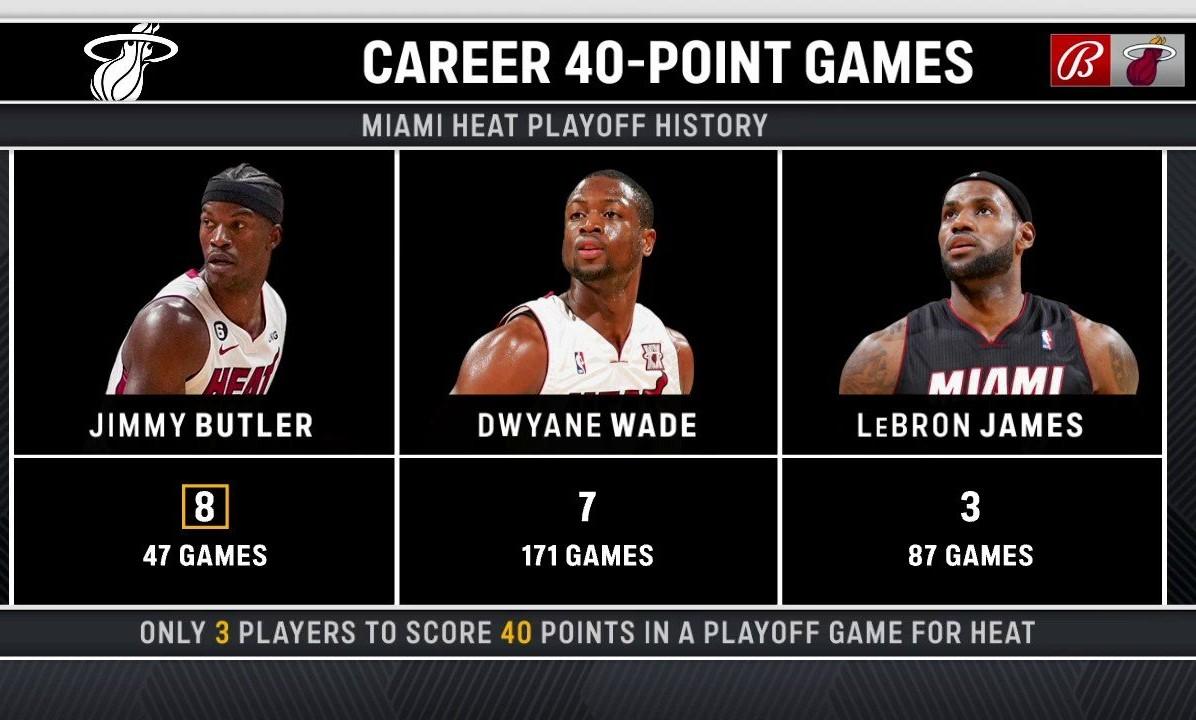 Jimmy Butler a sorti son 8e match à 40 points en Playoffs : nouveau record au Heat, 1 de plus que Dwyane Wade !