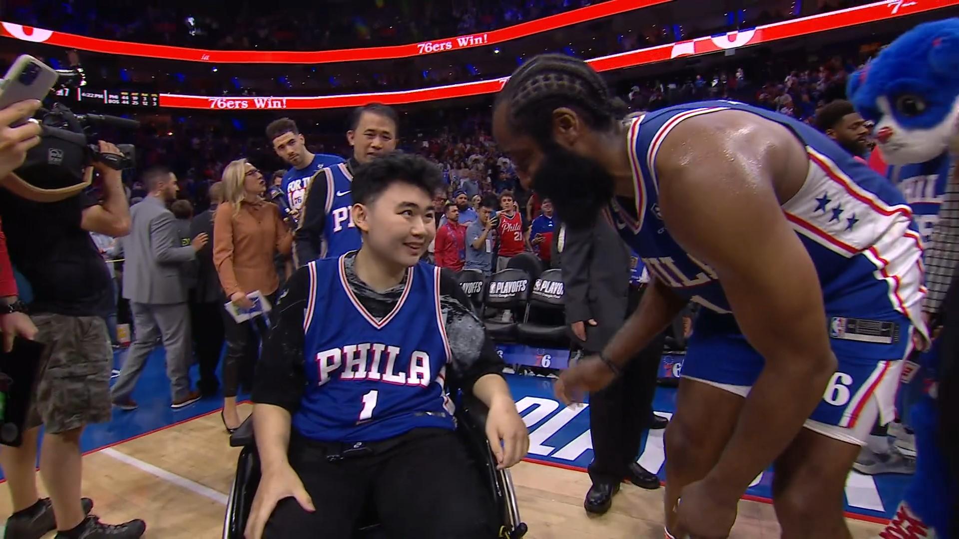 En marquant 42 points dimanche et en offrant la victoire aux Sixers à travers plusieurs shoots décisifs, James Harden a offert un vrai chef-d’œuvre aux fans de Philadelphie. Parmi eux : John Hao, grand supporter du Barbu qui a perdu l’usage de ses jambes dans la terrible fusillade de Michigan State il y a trois mois. Une soirée qu’il n’oubliera jamais.