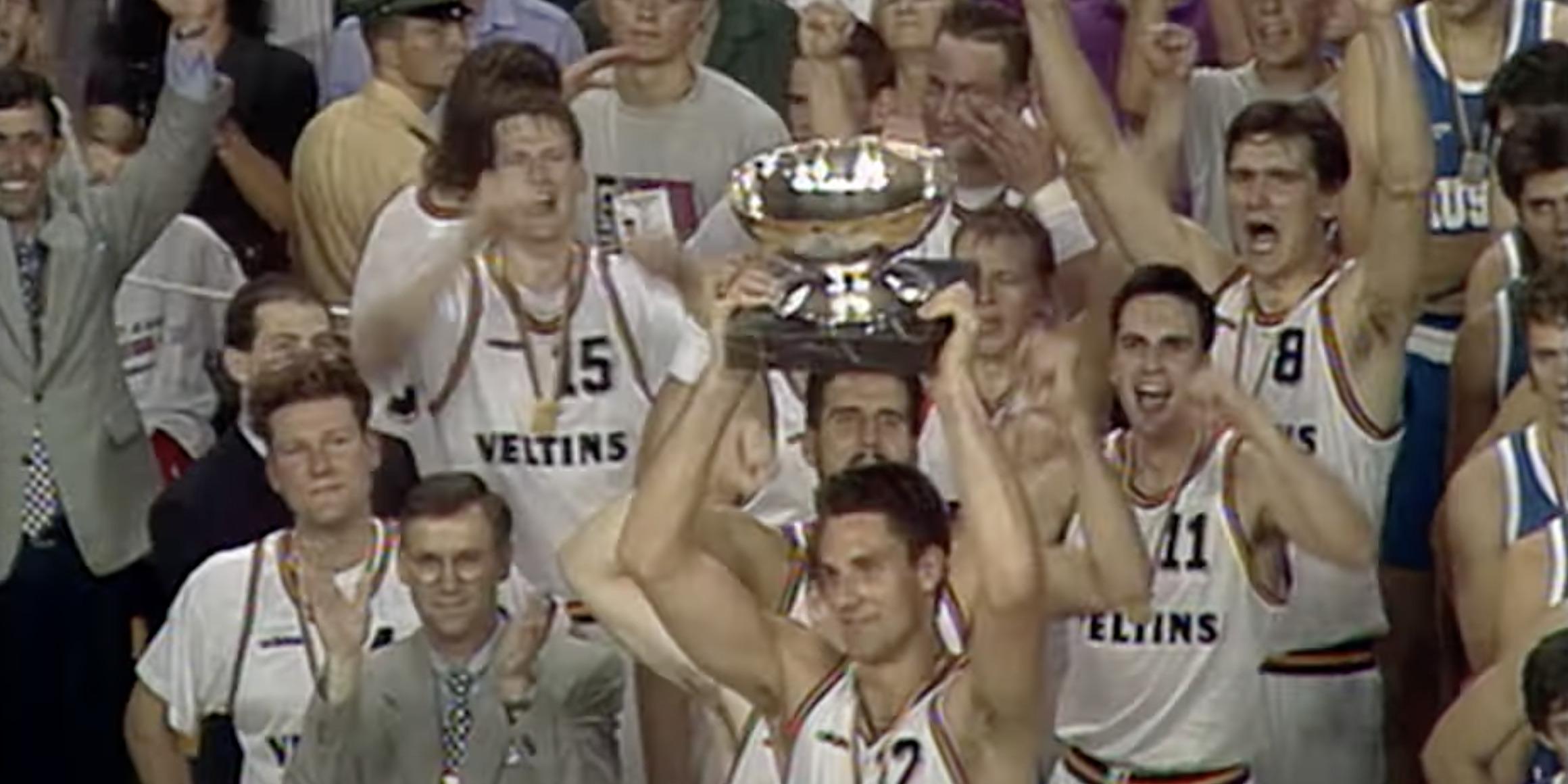Une finale très politique, puisque l’Allemagne réunifiée – bien qu’elle ne compte encore que des joueurs nés à l’Ouest – croise le fer avec la Russie, nouvellement formée de l’éclatement de l’URSS. Un peu de tension dans les gradins, et encore plus sur le terrain, bien que les acteurs aient pleinement conscience que tout cela reste uniquement sportif. Le match sera d’une grande intensité, le public voit ses joueurs toucher du bout du doigt leur rêve. La fin est irrespirable, mais l’Allemagne prend le meilleur et l’emporte 71-70. L’un des plus grands exploits du basket européen, l’un des plus beaux assurément.