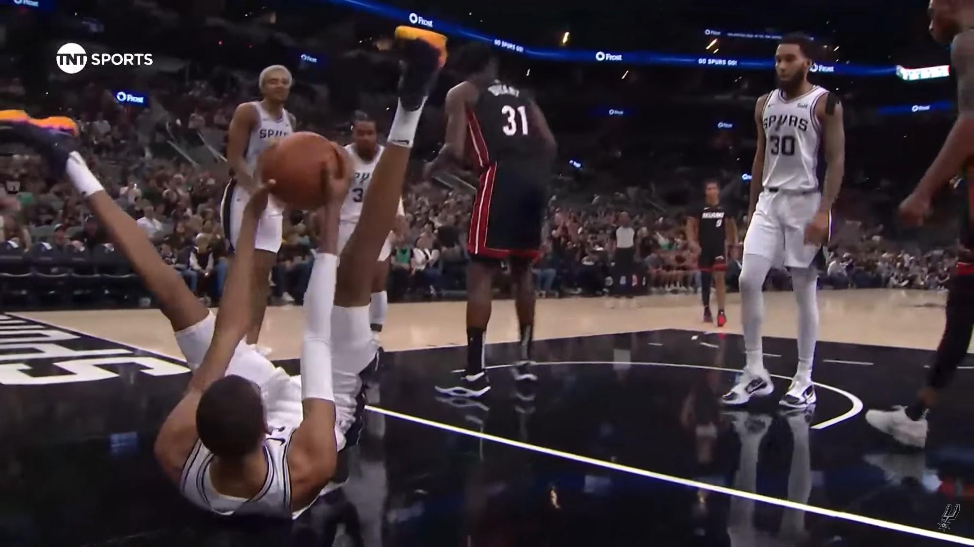 Pour son deuxième match de présaison cette nuit face au Heat, et son premier devant le public des Spurs, Victor Wembanyama a régalé en sortant non seulement une très belle perf, mais en lâchant surtout de gros highlights en mode alien. Allez, petite séquence replay.