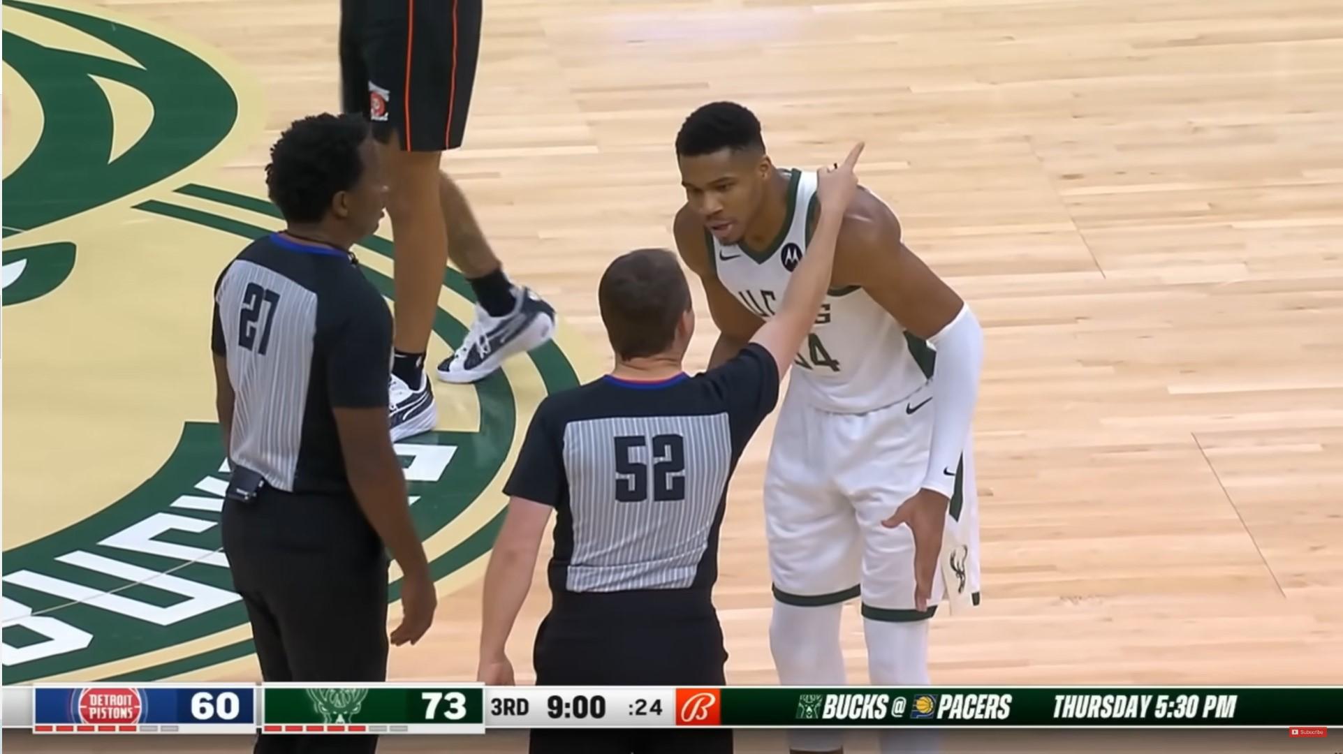 Giannis has been ejected after receiving his second technical foul. 🤔#FearTheDeer | #NBA pic.twitter.com/UKuAIJJrU7