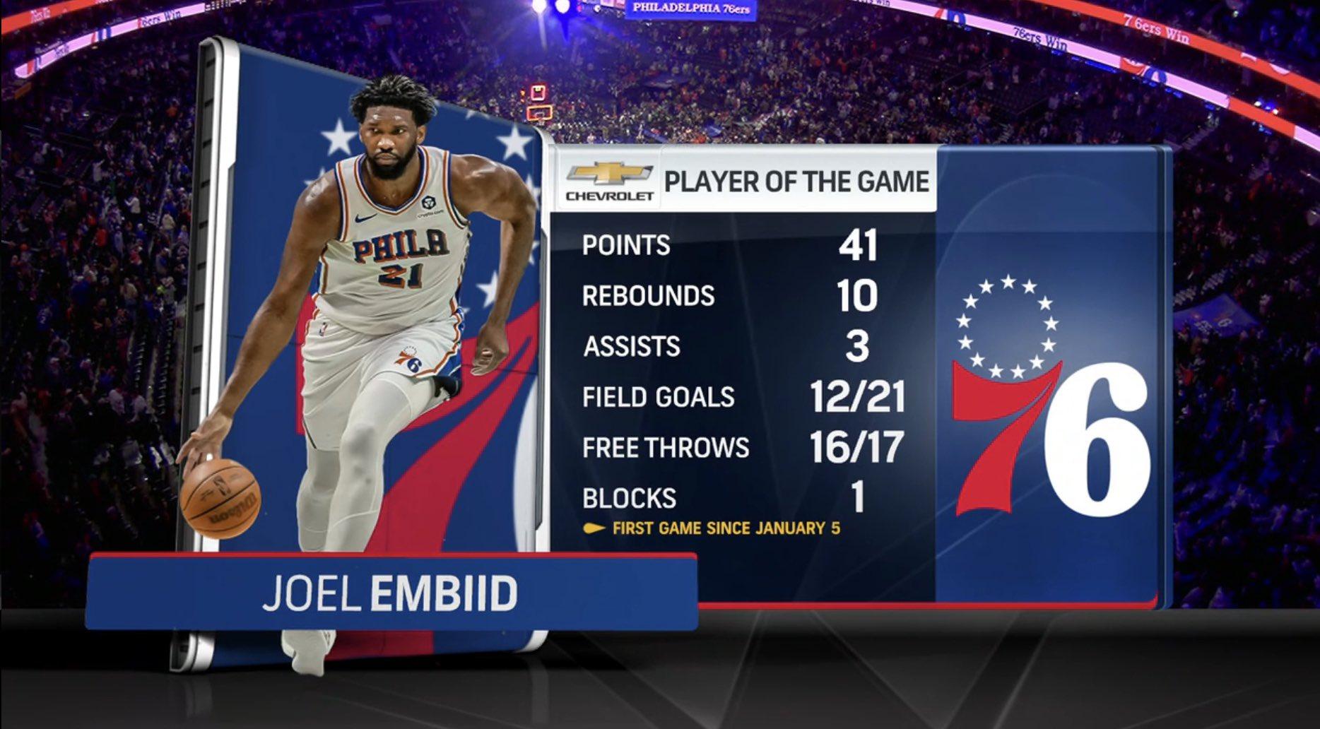 Joel Embiid est de retour : 41 points – 10 rebonds en 31 minutes, les Rockets ont pris tarif