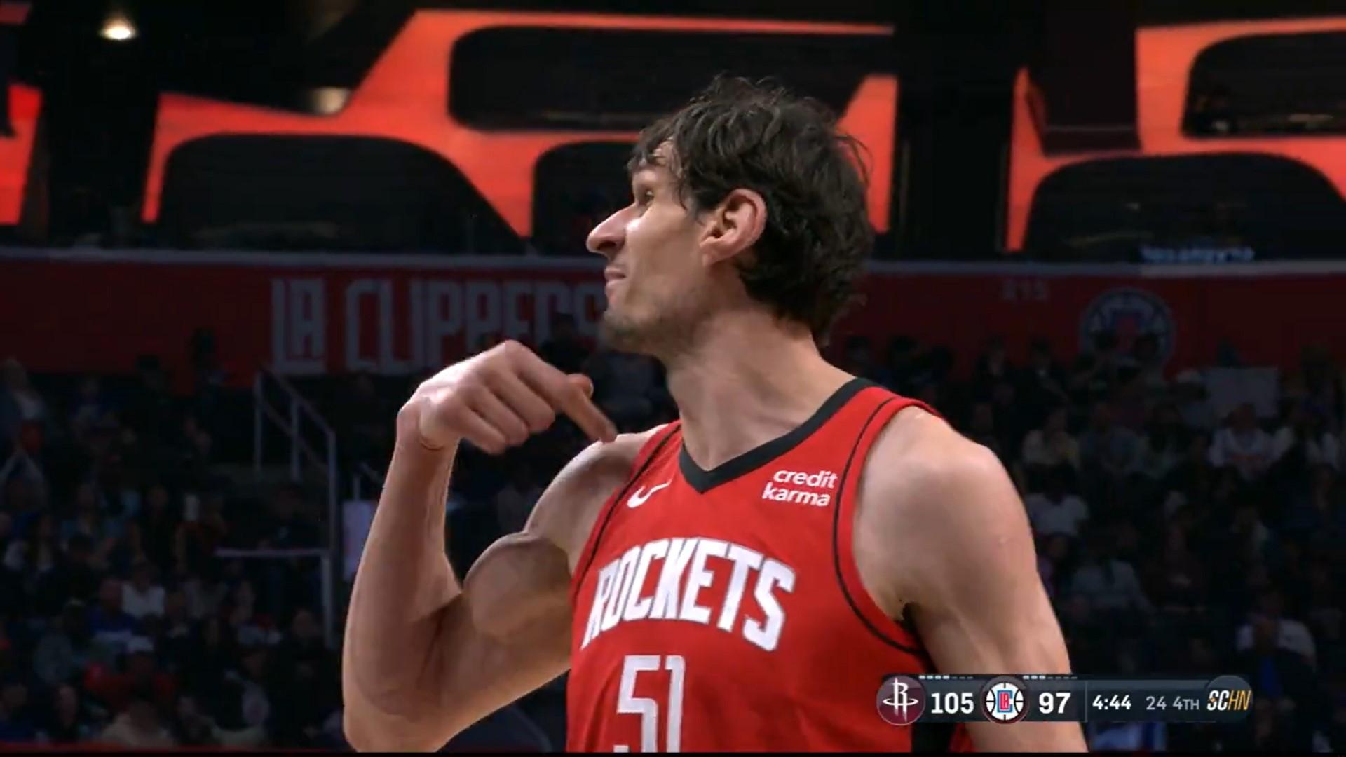 Cette nuit, lors du match sans enjeu opposant les Clippers aux Rockets (remporté par Houston), Boban Marjanovic était sur la ligne des lancers avec un peu moins de cinq minutes à jouer. Il rate le premier, provoquant ainsi l’excitation des fans californiens désireux de repartir de la Crypto Arena avec du poulot gratos.