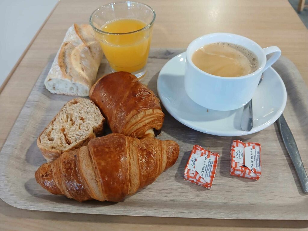 Levé 5h, parce qu’un rythme de vie ne se modifie pas en un week-end. Le plus important, la barre de fer perpendiculaire à mes deux tibias a disparu, je suis de nouveau opérationnel. Premier réflexe ? Le petit-déjeuner est compris et à volonté, je vous laisse à votre imaginaire, en vous dévoilant simplement le chapitre 1 de mon festin.