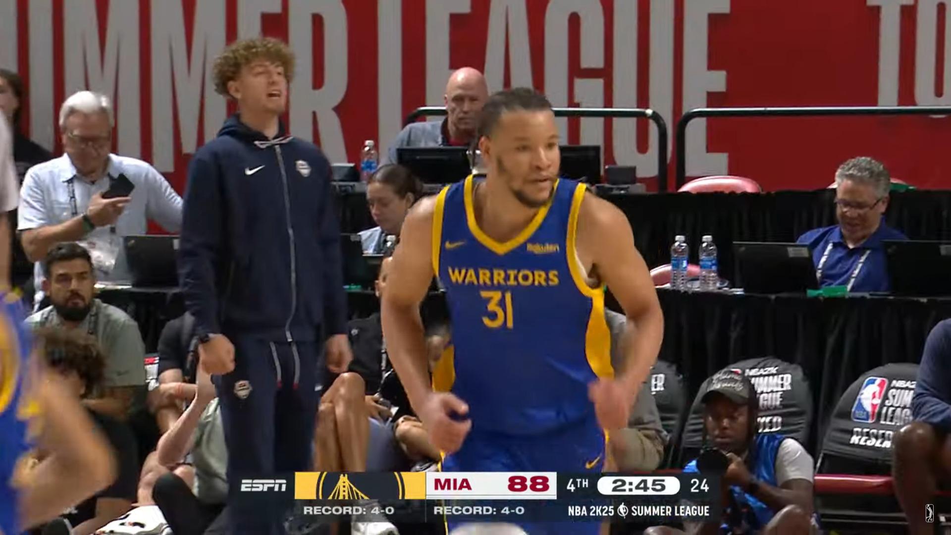 Lorsque les Warriors ont invité Kevin Knox pour participer à la Summer League en juin dernier, on avoue que l’info nous avait quand même fait lâcher un petit sourire en coin. Non pas que l’ailier soit un mauvais joueur de basket, mais simplement qu’avant de passer de Paul George à Kev Nox, il faut se mouiller la nuque. Eh oui, si la rumeur PG aux Warriors a pris de l’ampleur cet été, c’est finalement le double K qui a pop dans la Baie, Young Trece s’étant engagé de son côté avec Philadelphie. Et si ce revirement de situation a a priori de quoi nous faire marrer, force est de reconnaître que Knox a montré de belles choses en Summer League, en tout cas suffisamment pour convaincre les Warriors de lui laisser une nouvelle chance.