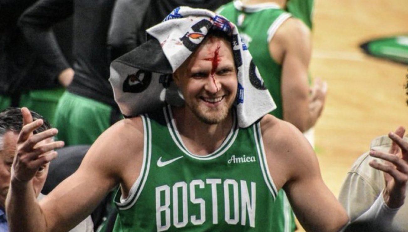 Image forte de la nuit, le front en sang de Kristaps Porzingis a marqué les esprits. Mais pour le joueur letton des Celtics, ce fut plutôt un moment.. sympa à vivre avec le public.