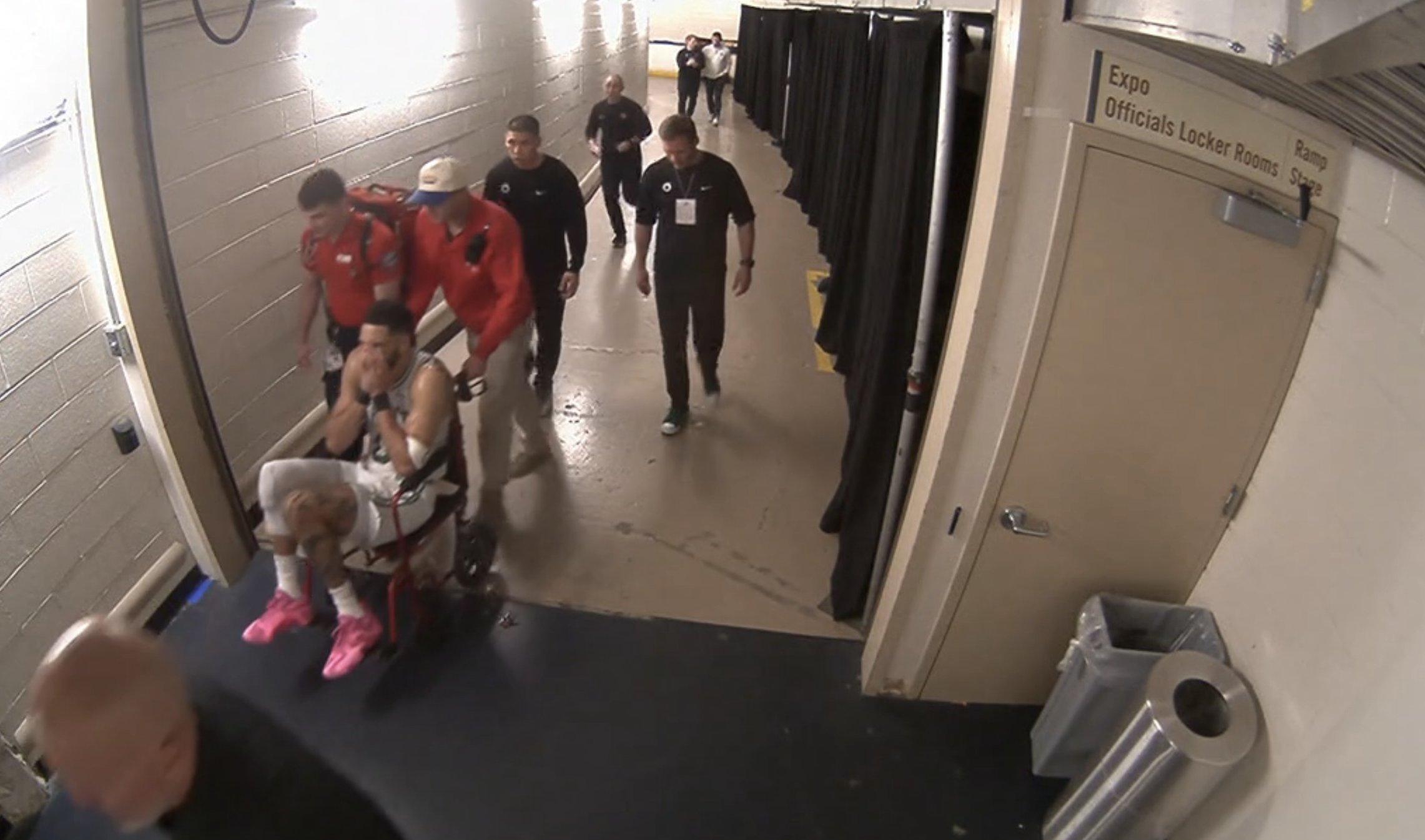 Jayson Tatum va passer des examens dans la foulée du match, il est sorti en chaise roulante de la salle 😣