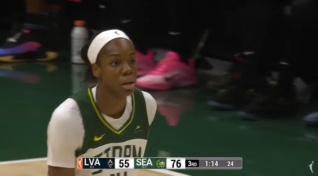 Mais le match qui nous intéressait le plus cette nuit, c’est bien sûr le Storm de Seattle qui recevait les Aces de Las Vegas, et dans le nord-ouest des Stazounis ce sont les filles de Noelle Quinn qui ont le mieux fait leur job. Une victoire tranquille, assurée dès la première mi-temps, avec une Nneka Ogumwike très en forme et qui lâche décidément un début de saison bien vénère. Erica Wheeler est sortie de sa boîte ou plutôt du banc, Gabby Williams a eu son rayonnement habituel (12/5/5/2) et, surtout, on a enfin pu voir plus de 5 minutes de Dominique Malonga. 12 minutes au total, c’est pas l’Pérou comme disent les (très) vieux, Mais la Dominance a montré de quel bois elle était faite avec 8 points et 5 rebonds sur la période, de bonne augure pour la suite et sa montée en puissance.