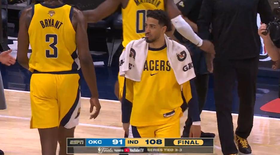 Le Thunder menait 3-2. Tyrese Haliburton, la star des Pacers, était très amoindrie, et le match 5 avait laissé transparaitre un virage important dans cette finale NBA, avec une équipe d’OKC semblant avoir pris le dessus. Et comme prévu le Thunder… s’est fait exploser par Indiana. Quelles Finales, vraiment, merci la vie.