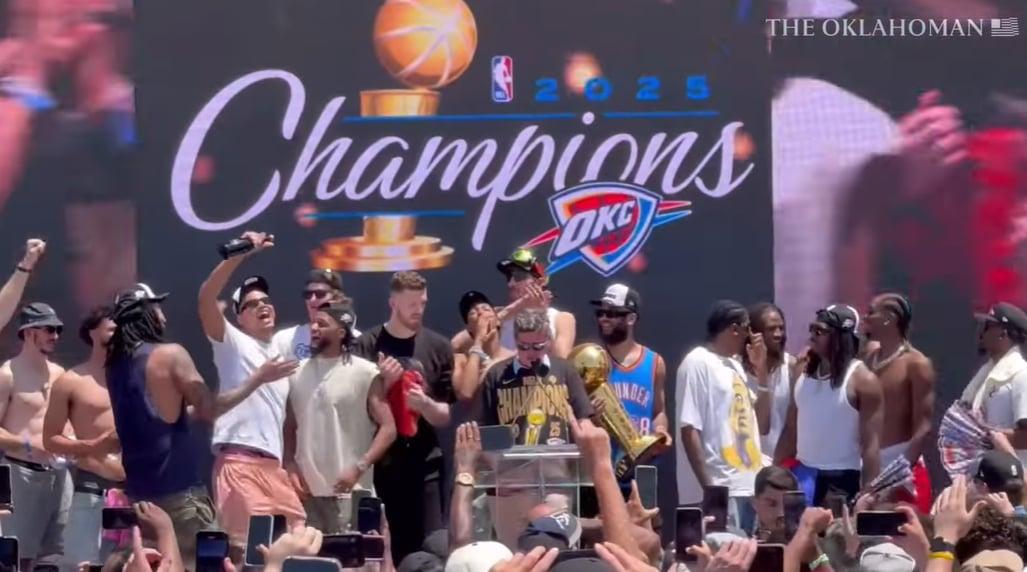 Hier soir les joueurs du Thunder ont fêté avec leurs fans leur magnifique titre de champion NBA 2024-25. Vous pouvez retrouvez les photos et infos les plus croustillantes juste ici, mais sachez surtout que le maire de la ville a annoncé hier que chaque journée de juillet serait une journée hommage à un membre de l’organisation d’OKC. Et si vous n’avez rien compris à cette intro, on essaie de vous expliquer ça plus bas.