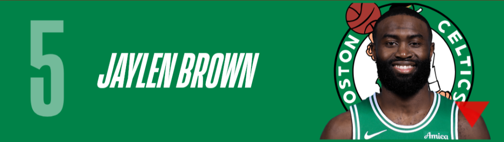 Absent lors de deux des cinq derniers matchs de Boston, Jaylen Brown a vu son équipe surclasser les Suns et les Bucks sans lui. La preuve que les Celtics ne reposent pas que sur JB. On peut même affirmer l’inverse : Boston a un net rating (différence entre efficacité offensive et défensive) supérieur quand Brown est sur le banc que lorsqu’il est sur le terrain (+12,5 contre +4,5). Ça ne veut pas dire pour autant que Boston est meilleur sans Jaylen, ça témoigne surtout de l’excellent boulot réalisé par le coach Joe Mazzulla. La saison de Brown reste magnifique – peu importe ce que disent les stats avancées – et il mérite sa place dans le Top 5 MVP.