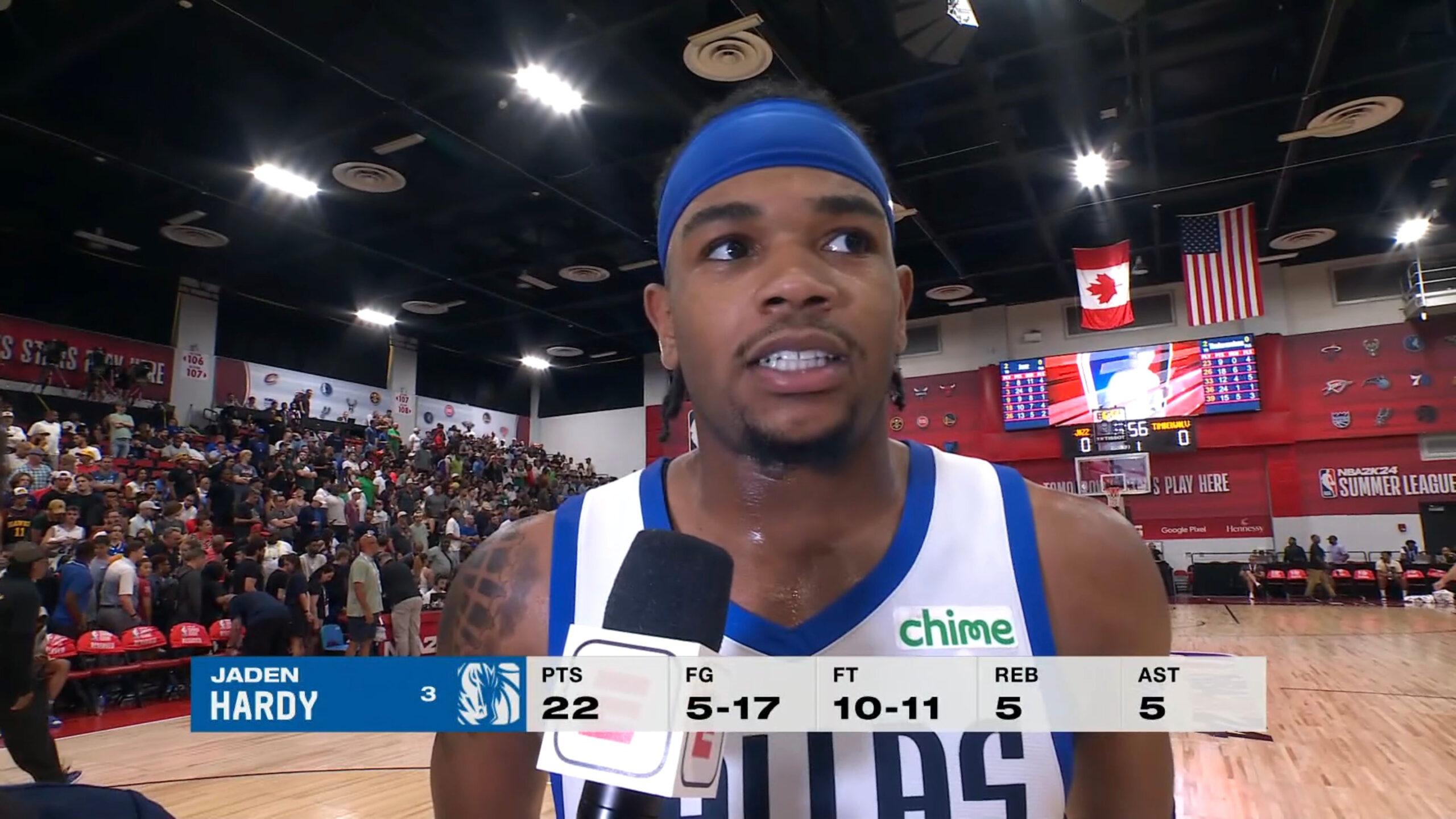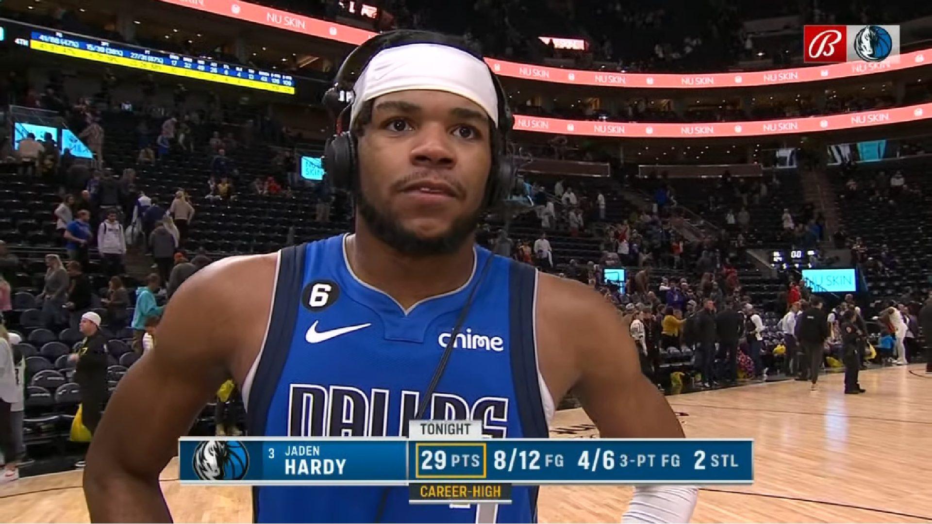 Sélectionné en début de second tour à la Draft NBA 2022 par les Sacramento Kings, Hardy est échangé aux Dallas Mavericks. Au cours de sa première saison au Texas, Jaden Hardy dispose d’un temps de jeu réduit mais parvient quand même à inscrire près de 9 points par match en sortie de banc. Il confirme la saison suivante, étant pleinement intégré à la rotation de Jason Kidd derrière les stars Luka Doncic et Kyrie Irving.