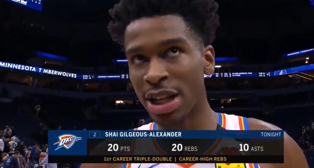 Shai Gilgeous-Alexander tape son premier triple-double en carrière, et il est historique : 20-20-10 face aux Wolves, pousse-toi Shaq !