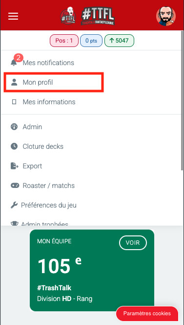 Rendez-vous dans Mon profil > Trophées. Ta fiche de joueur (accessible depuis les classements ou les pages d’équipe) affiche également tes hauts faits. Le pourcentage de complétion (taux des joueurs ayant débloqué le trophée) indiqué est désormais calculé sur tous les joueurs inscrits de la saison.