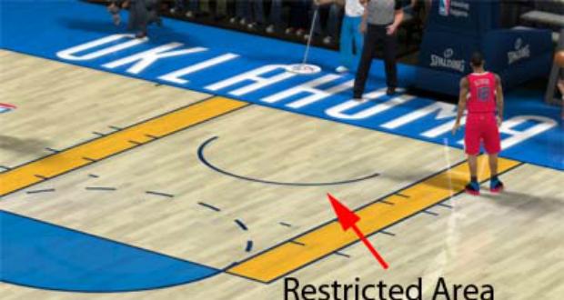 La restricted area est la zone située sous le panier et délimitée par un arc de cercle. Zone dans laquelle le défenseur n’a pas le droit de se trouver pour essayer de défendre, sous peine d’être automatiquement sanctionné même s’il n’est pas en mouvement.
