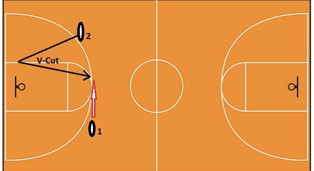 Action de couper depuis l’aile vers la ligne de fond et de remonter subitement (sous forme de V) afin de semer le défenseur. Technique de coupe fréquemment utilisé par les shooteurs pour se démarquer et pouvoir ainsi travailler en catch-n-shoot.